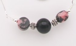 RON20-Necklace, rhodonite discs with onyx and silver beads